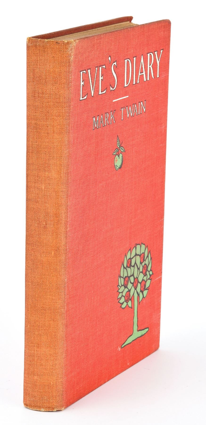 Handsome book: Eve's Diary by Mark Twain. First edition. London and New York: Harper & Brothers, 1906. Hardcover, 5.5 x 8.25, 109 pages. Book condition: VG/None, with sunning to spine. A desirable volume featuring illustrations by Lester Ralph.