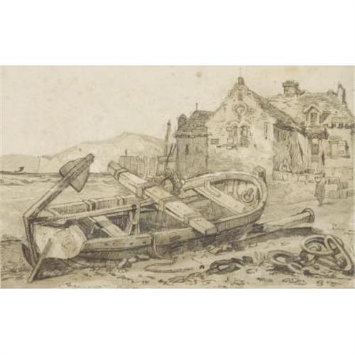 Samuel Prout, Pencil on paper, Boat on a Beach