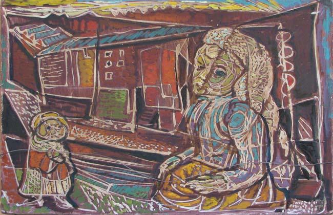 Title:  Untitled with second figural painting on reverse, unfinished)