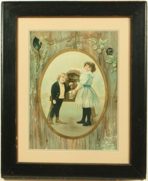 Pre-Prohibition Texas Beer Sign. Early Lithograph. Image measures 15-1/2" x 21".