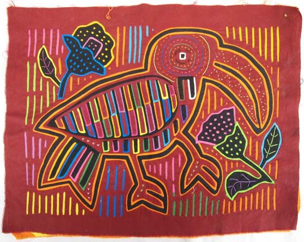 San Blas Island Mola Cloth of Toucan Bird. This Bright piece measures approx. 13'' x 16''.