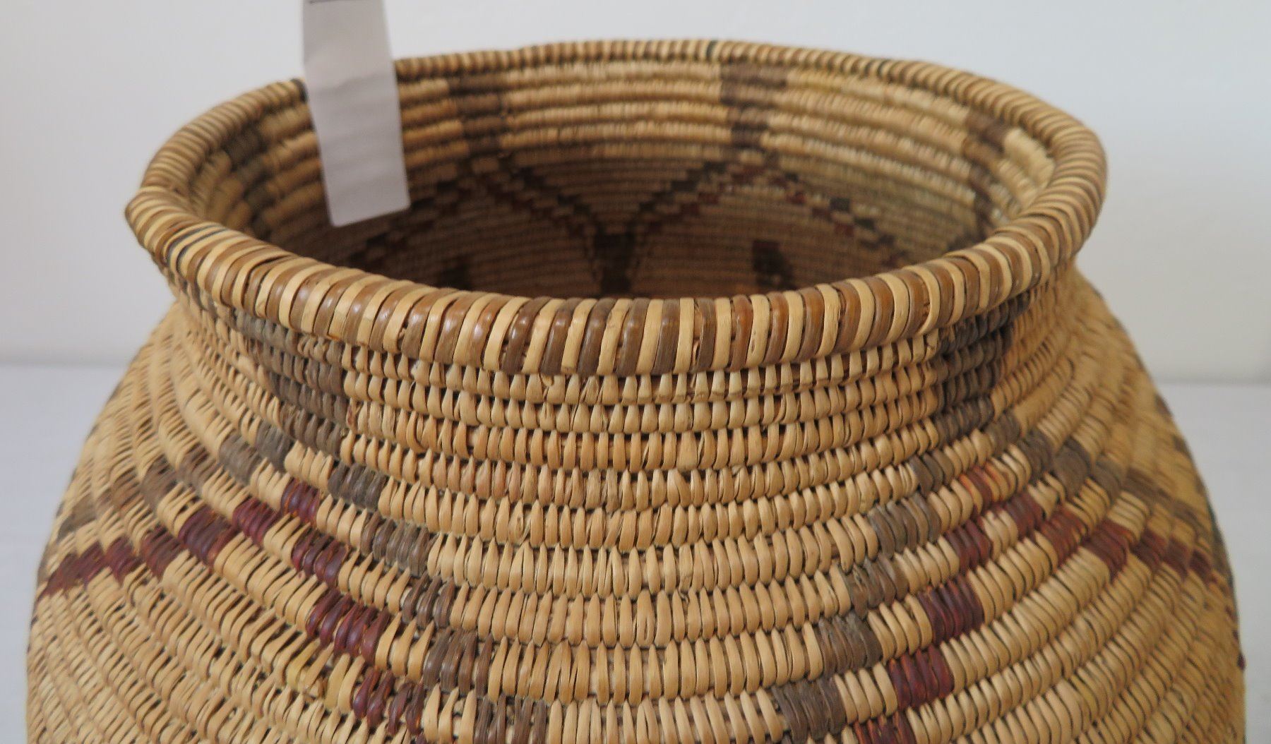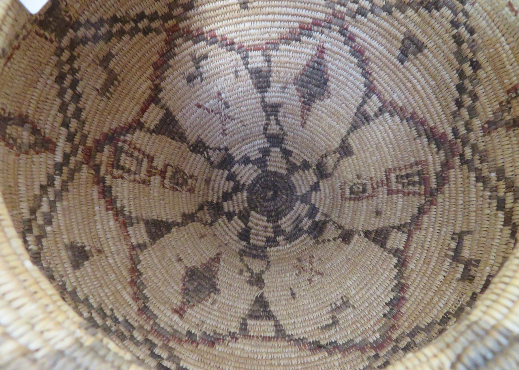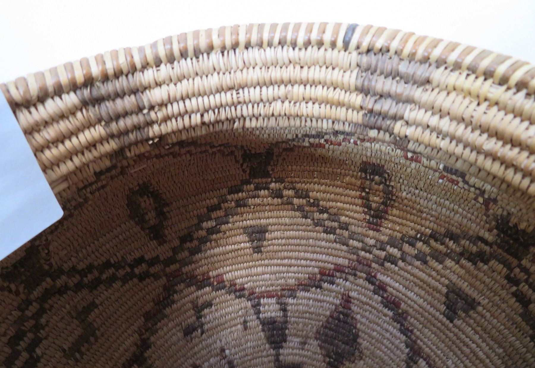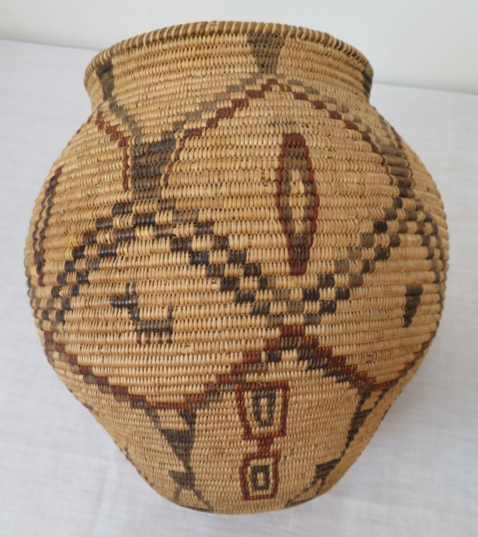 San Carlos Apache Olla, c. 1940s. Made of willow, red bud and devil's claw, the item measures 10" x 9". San Carlos Apache, New Mexico. Nice, polychrome basket. Condition: Good, see images. Shipping: $45.00 USA estimate only, due to size and value, w/insurance and signature.