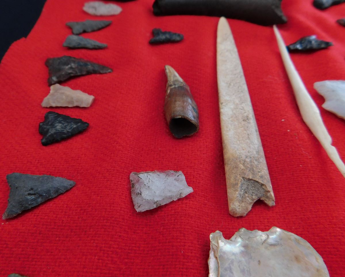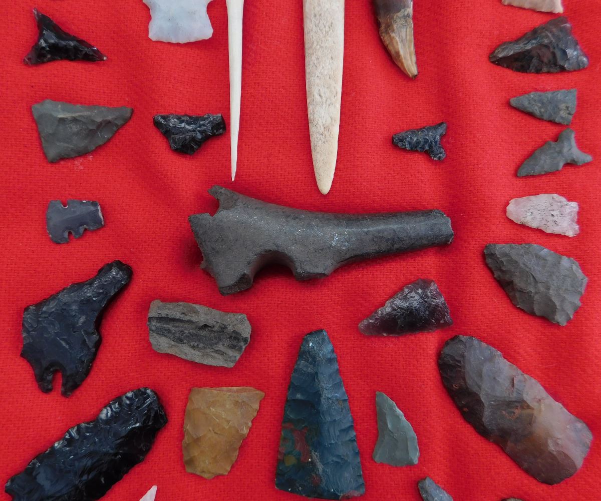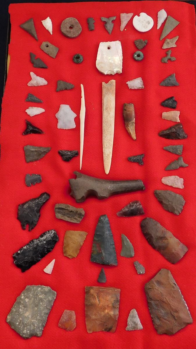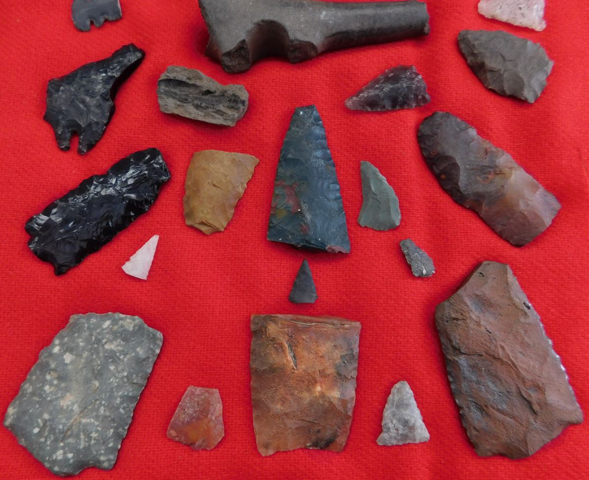 San Diego Artifact Collection, paleo to historic period. Contains flint, bone, shell, chert and obsidian. Items range from 0.5" to 4". Found near border of San Diego/Imperial counties, California. Frame not included. There are over 50 artifacts in this lot. Condition: Many broken points, all as found, see images. Shipping: $15.50.