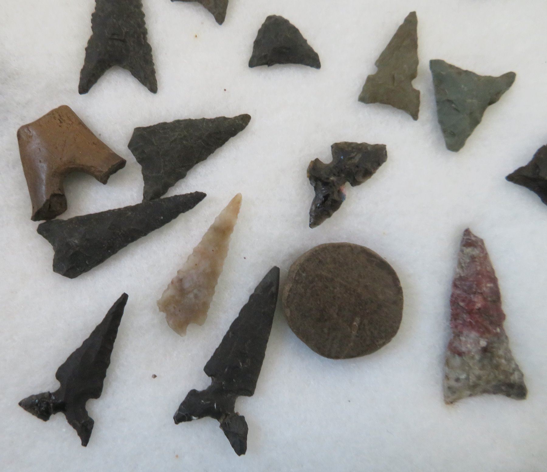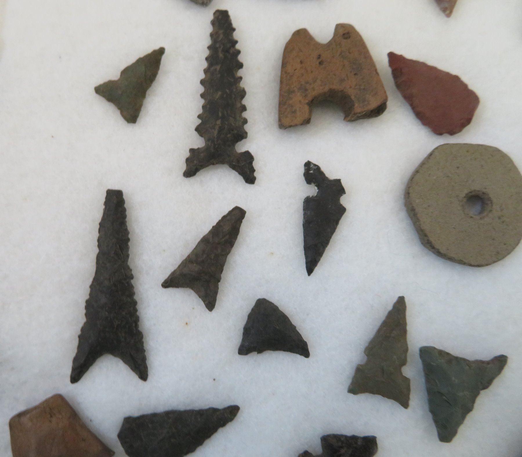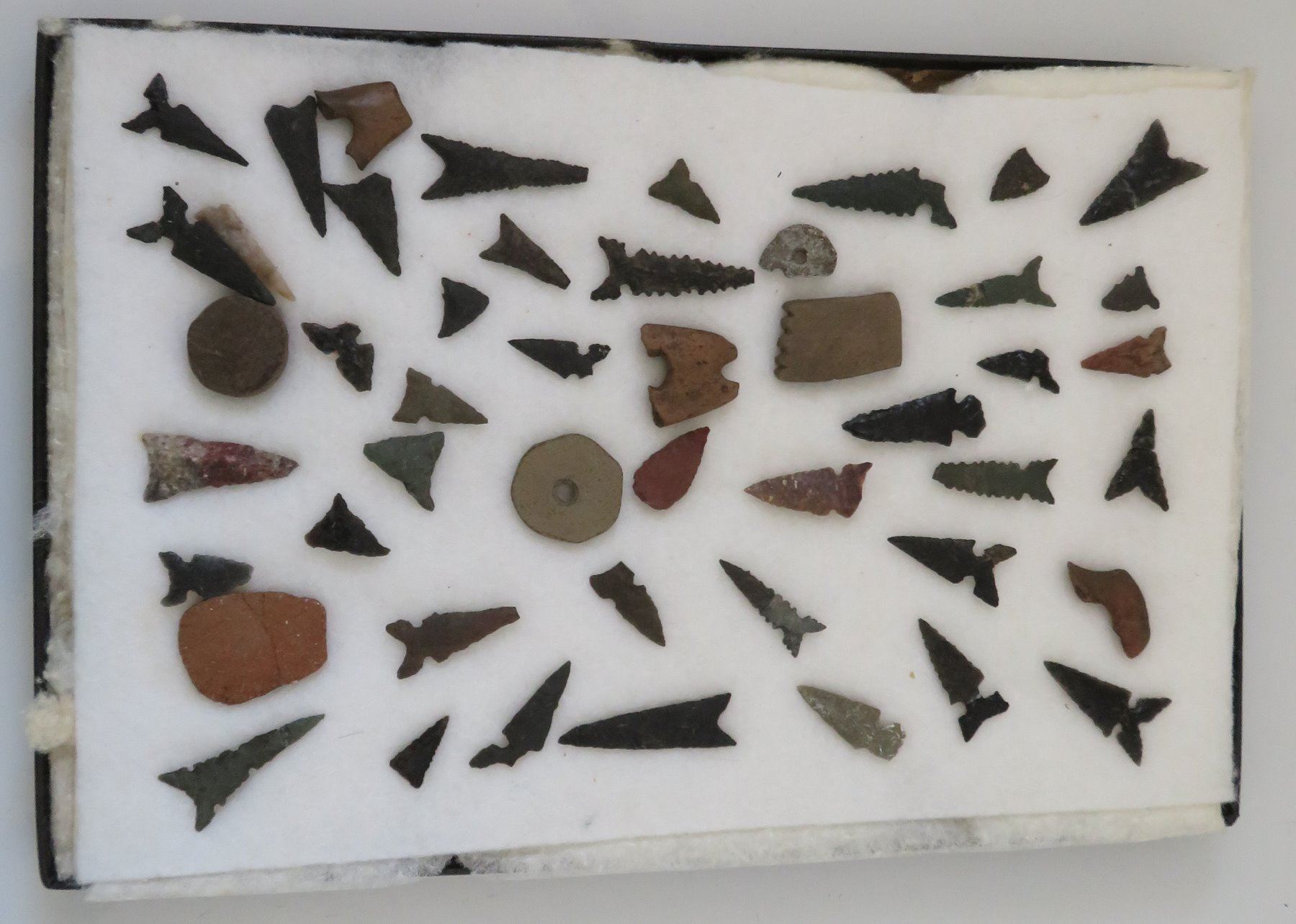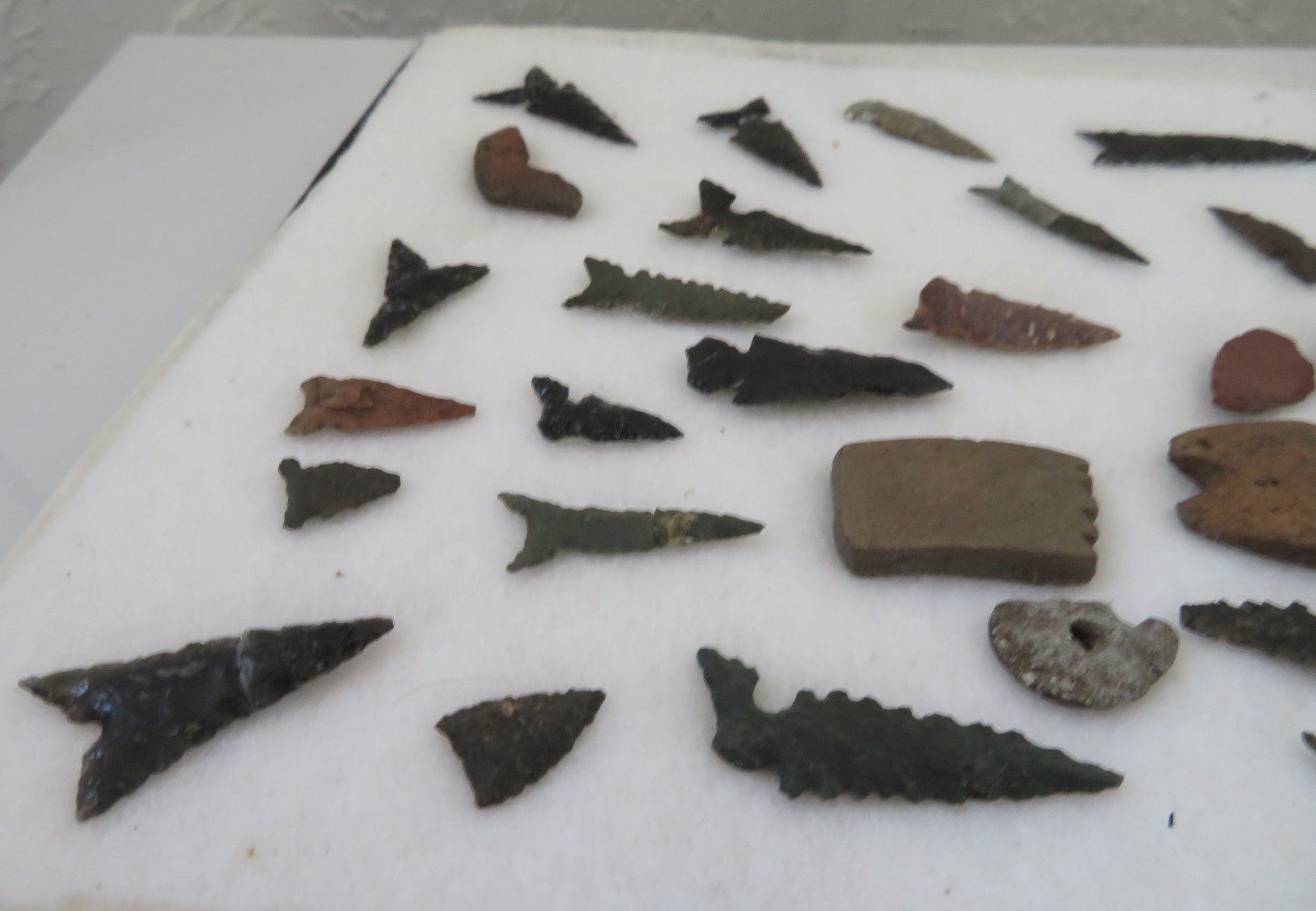 San Diego County Artifact Collection, early historic period. Made of pottery, felsite and chert, the longest item measures 2". Carlton Hills, Santee, San Diego County, California. Nice old collection, many points are valued at 100.00 each. Frame not included. Condition: As found, see images. Shipping: $25.50 w/insurance and signature, due to value.
