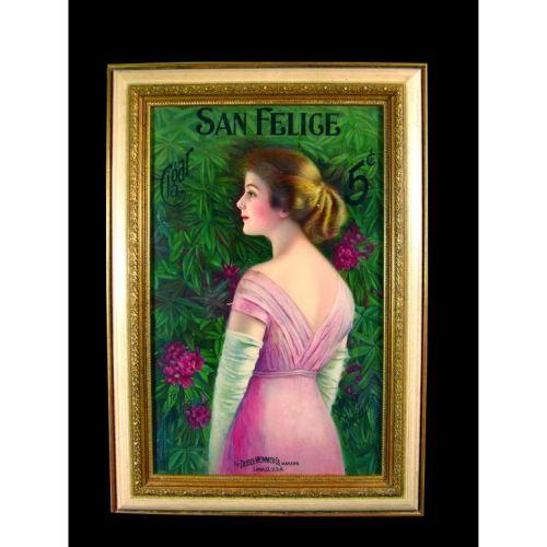 San Felice Cigar Paper Sign, Deisel-Wemmer Co., Lima, OH, minor scratch on her shoulder otherwise excellent condition, 16 x 25 1/2 inches.
