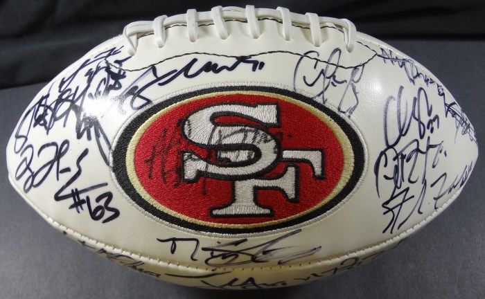 SF 49ERS "Super Bowl Champions XVI, XIX, XXIII XXIV, XXIX NFC Champions 1981, 1984, 1988, 1989, 1994" Football signed by San Francisco 49ers Team. No COA's. Est. Value $265.00 - $290.00.