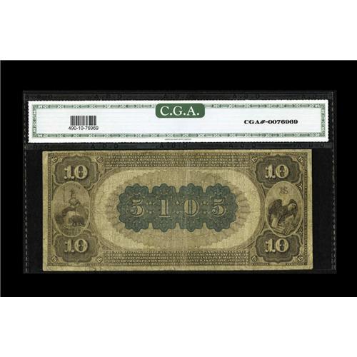 <B>San Francisco, CA</B></I> - $10 1882 Brown Back Fr. 490 <B>Wells-Fargo Nevada NB</B></I> Ch. # (P)5105<BR>This CGA graded <B>Very Good-Fine 10</B></I> example with minor restoration represents an affordable example for the type and bank.
