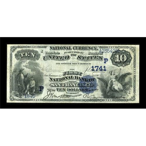 <B>San Francisco, CA</B></I> - $10 1882 Date Back Fr. 539 <B>The First NB</B></I> Ch. # (P)1741<BR> It has been a number of years since we have offered a Date Back from this bank at auction. This original problem free example with printed signatures should make a nice addition for type. <B>Very Fine.</B></I><BR><BR><b>Shipping:</b> Coins & Currency (<a target="_blank" href="http://www.heritageauctions.com/common/shipping.php">view shipping information</a>)
