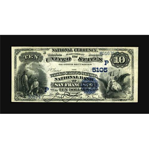 <B>San Francisco, CA</B></I> - $10 1882 Date Back Fr. 545 <B>Wells-Fargo Nevada NB</B></I> Ch. # (P)5105<BR> The paper is crisp and the inks dark on this pleasing issue with a popular title. <B>Very Fine-Extremely Fine</B></I><BR><BR><b>Shipping:</b> Coins & Currency (<a target="_blank" href="http://www.heritageauctions.com/common/shipping.php">view shipping information</a>)