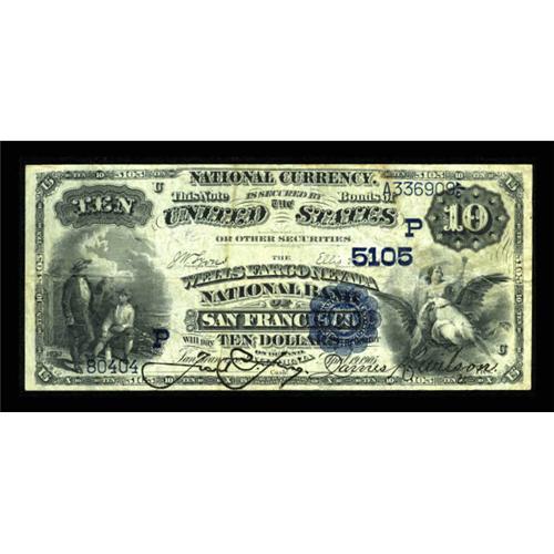 <B>San Francisco, CA</B></I> - $10 1882 Date Back Fr. 545 <B>Wells-Fargo Nevada NB</B></I> Ch. # (P)5105<BR> An attractive example of this sought after title. Bright <B>Very Fine, </B></I>a perfect collector grade. <BR><BR><b>Shipping:</b> Coins & Currency (<a target="_blank" href="http://www.heritageauctions.com/common/shipping.php">view shipping information</a>)