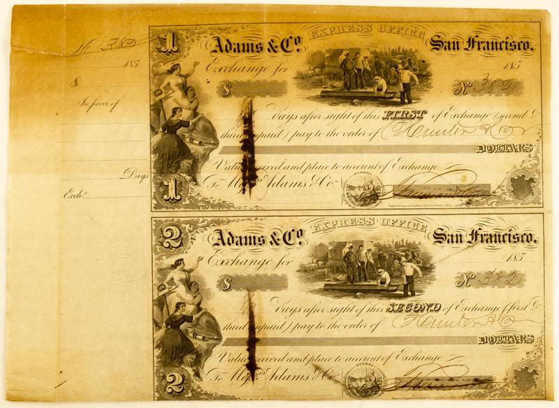 San Francisco,CA - 1850 - Adams & Co Express Office First and Second of Exchange :