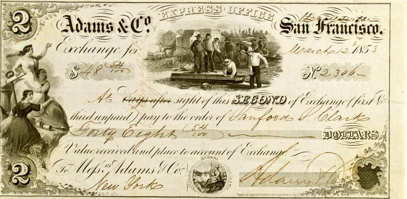 San Francisco,CA - 1853 - Adams & Co. Second of Exchange :