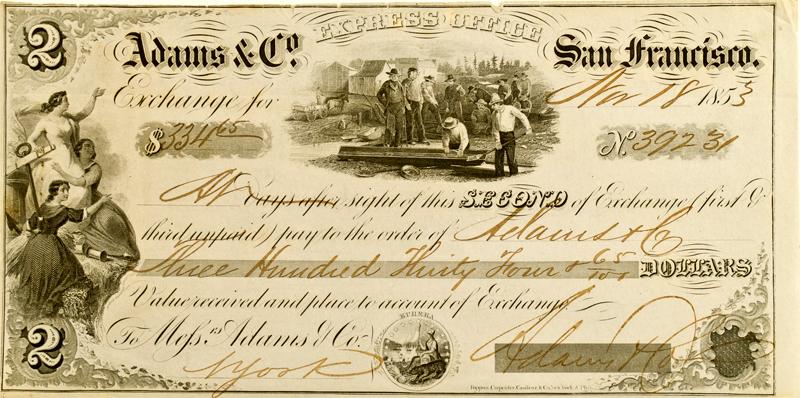 San Francisco,CA - 1853 - Adams & Co. Second of Exchange :
