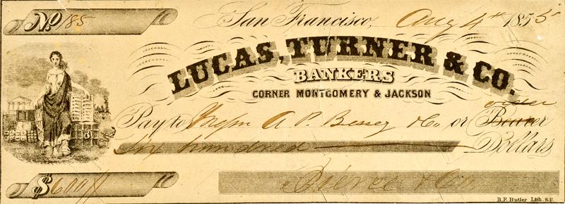 San Francisco,CA - 1855 - Lucas Turner & Co. Check :