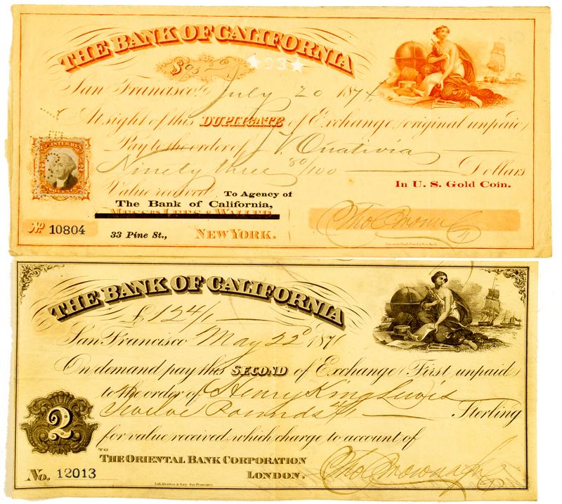 San Francisco,CA - 1871-1874 - Bank of California Bills of Exchange :