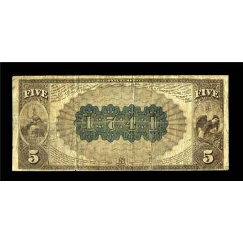 <B>San Francisco, CA</B></I> - $5 1882 Brown Back Fr. 471 <B>The First NB</B></I> Ch. # (P)1741<BR> Nice pen signatures grace this $5 that may have been used to pay for the services of Paladin. A couple of minute holes caused by the lateral center fold are noticed on this still snappy $5 Brown Back. <B>Very Good-Fine.</B></I><BR><BR><b>Shipping:</b> Coin/Currency (<a target="_blank" href="http://www.heritageauctions.com/common/shipping.php">view shipping information</a>)