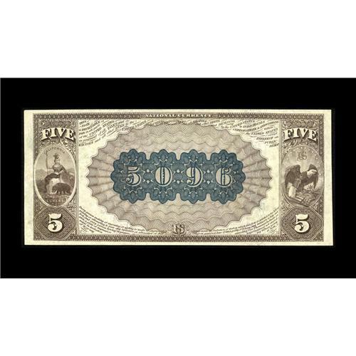 <B>San Francisco, CA</B></I> - $5 1882 Brown Back Fr. 475 <B>The San Francisco NB</B></I> Ch. # (P)5096<BR>A gorgeous example with four boardwalk margins, cavernous original embossing, and blazing colors. There are a few light handling marks which are typical for this run of San Francisco Brown Backs, but to call this outstanding example anything less than gem would be a travesty. <B>Gem Crisp Uncirculated.</B></I>