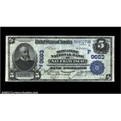 San Francisco, CA - $5 1902 Date Back Fr. 593 Mercantile NB Ch. # (P)9683An attractive example from this short lived San Francisco bank. Bright Very Fine. Important notice: We expect to be auctioning lots at the rate of 200-250 per hour. Sometimes eBay Premier live bid software cannot keep up with that pace, so we strongly recommend that you place a realistic proxy bid now as insurance to avoid disappointment. Also please note that all Heritage/CAA lots purchased through eBay Premier carry a 20% Buyer's Premium. Please make sure you read the Terms and Conditions.