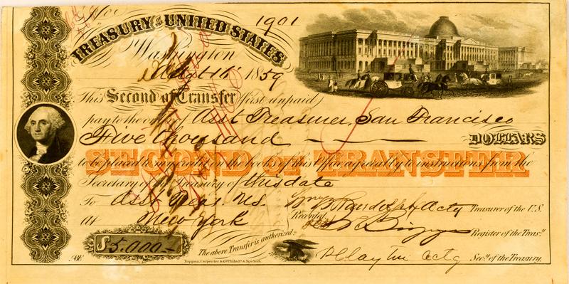 San Francisco,CA - August 11, 1859 - United States Treasury Second of Exchange :