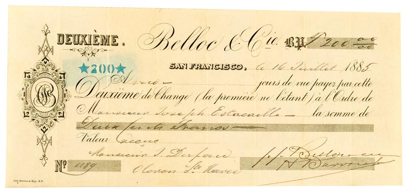 San Francisco,CA - July 16, 1885 - Belloc & Cie. :