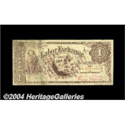 San Francisco, CA- Labor Exchange 1 Unit 1898A very rare full size Labor Exchange piece from a location we've not seen before. This is one of a group of Labor Exchange notes consigned to us by a collector in the Pacific Northwest who has searched for these items for over two decades. Fine-Very Fine. <BR><BR><B>Important notice:</B> Heritage usually auctions material at the rate of 200-250 lots per hour. On some occasions eBay Live bid software or the Internet may not be able to keep up with the pace of the auction. We recommend placing a realistic absentee bid now as insurance to avoid disappointment. Occasionally the auctioneer may eliminate or reject an eBay Live bid, and the auctioneer may also reopen a lot after the close of the eBay live bidding (usually because we missed an audience bid), and may reject your bid even if it shows you as the winning bidder. By bidding via eBay Live, you agree that Heritage may award the lot to another bidder at its sole discretion under the circumstances described above or any other reasonable circumstances. Since eBay bids are not shown to us until we open the lot on the floor, we treat those bids just like floor bids. In most cases the floor responds before the eBay bid is presented to us, due to Internet lag time, so for consistency we have made it a policy that floor bids are always considered first over tie eBay live bids. Also please note that all Heritage lots purchased through eBay Live carry a 20% Buyer's Premium. Please make sure you read the Terms and Conditions before you bid. <BR><BR><B>IMPORTANT ANNOUNCEMENT ABOUT RESERVES:</B> Heritage now divulges all reserves on its web site 7 days before every auction. If you want to know whether the reserve on this lot has been met, and if not, what the reserve amount is, please visit this lot page on the HeritageCoin.com web site, or email: bid@HeritageGalleries.com