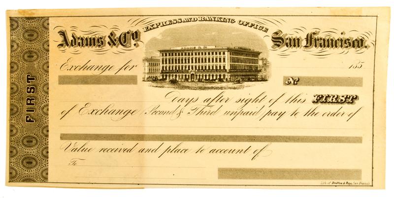 San Francisco,CA - c1850 - Adams & Co. Express and Banking Office First of Exchange :