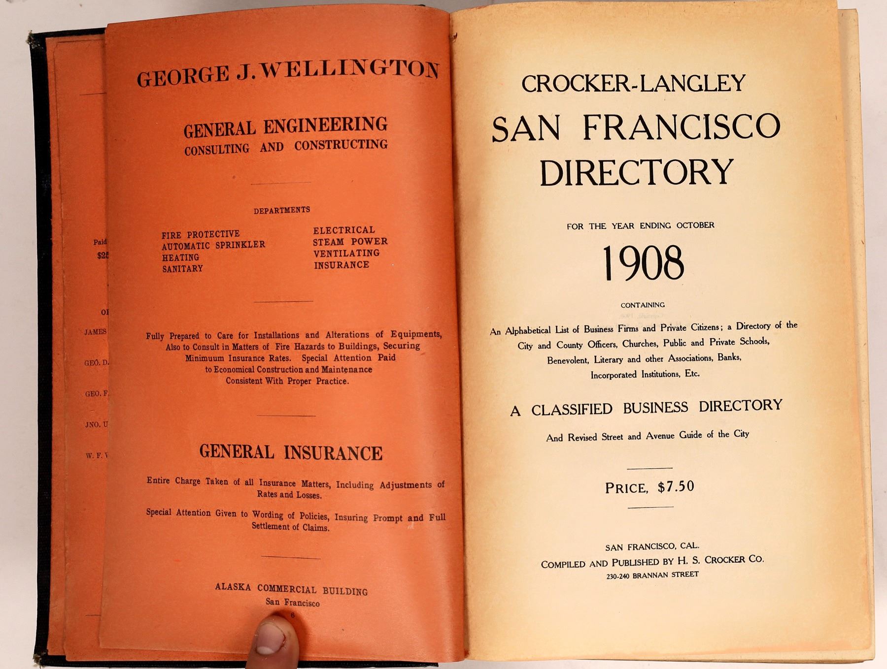 1908. 2218 .pages. Includes subjects like; index to advertisers, classified business directory, street and avenue guide, officers, cemeteries, banks military, etc. Cover wear over the years, but still readable. Spine cover not so much. Pages and cover are firmly attached.