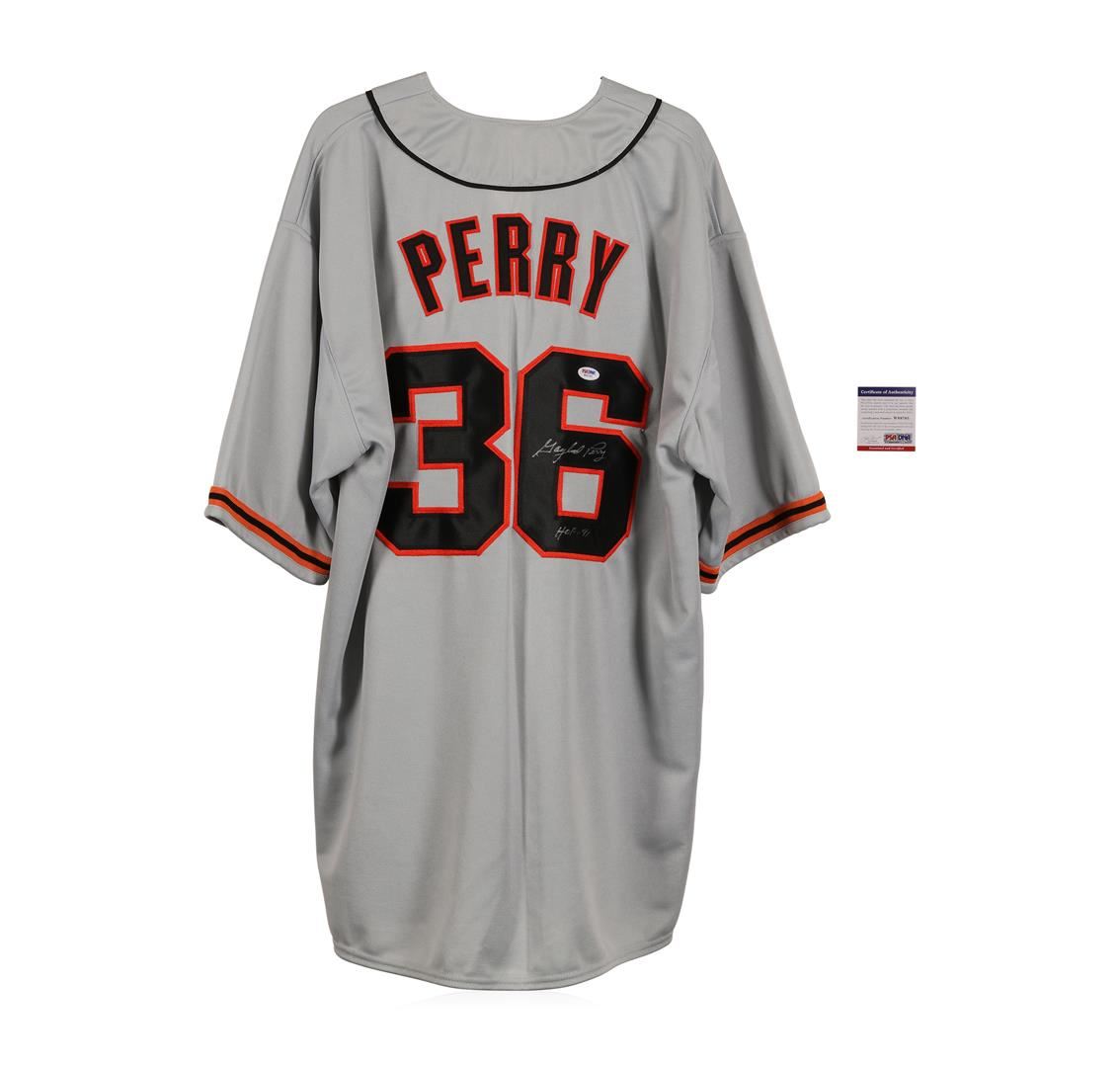 One San Francisco Giants Gaylord Perry Autographed Jersey. Comes with Certificate of Authenticity.