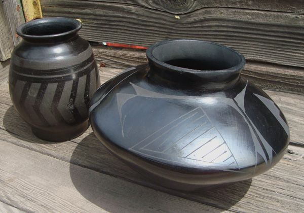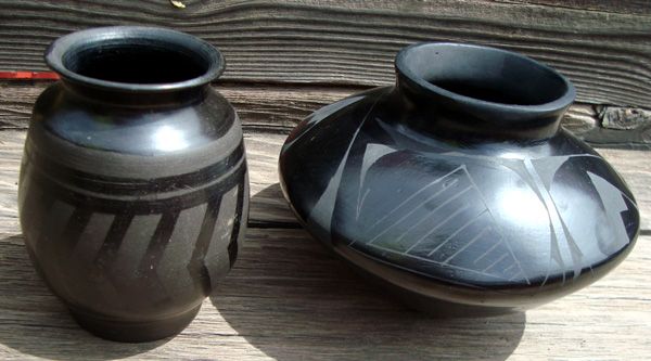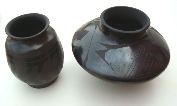 Native American San Ildefonso Jar by Lucy Martinez. Black on black. Measures approx. 3''H x 3 3/4''W.