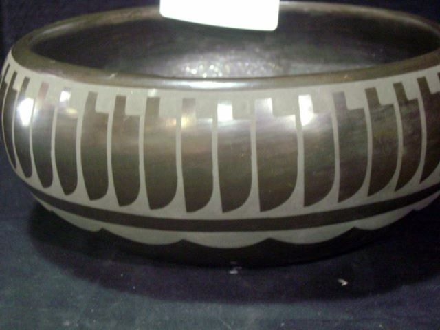 San Ildefonso Micaeous Black Pot w/ Feather Design by Martha Appleleaf, Daughter of Carmelita Dunlap