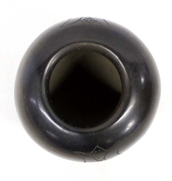 Native American San Ildefonso Miniature Pottery by Manuelita Mella (Woe Povi) Roybal (1913-1989) measures 2'' x 2'' and is signed on the bottom, nice thick walled highly burnished jar