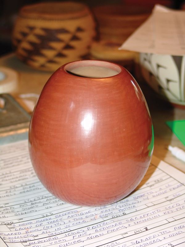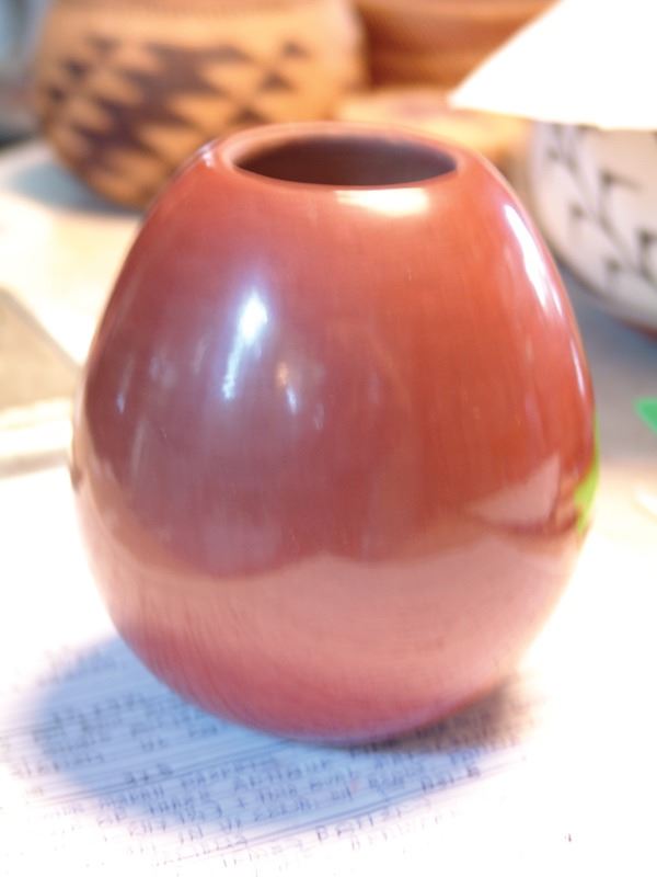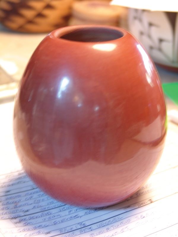 Mid/Late 1900s 5" x 4-1/2" Beautiful, rock polished, gloss finish seed jar done in red. Done by the Vigil team, Albert (1927-2009) & Josephine (1927-2001). Excellent condition.