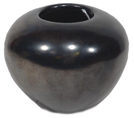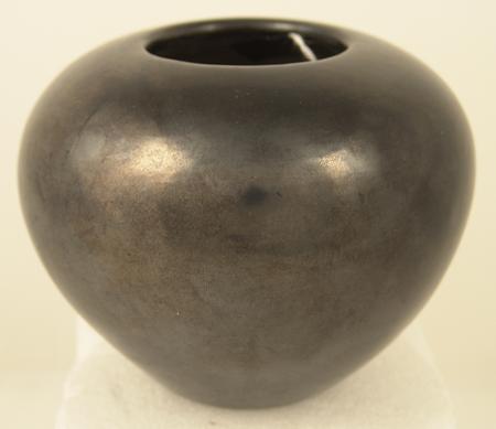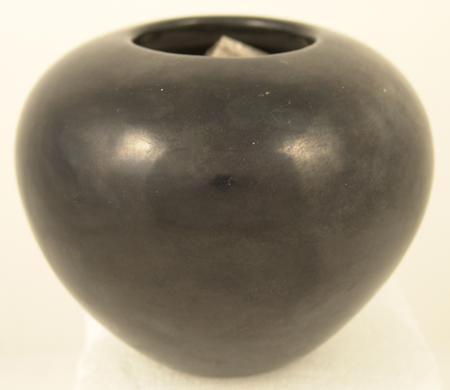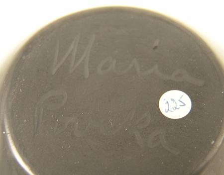 Classic small polished blackware bowl signed "Maria Poveka". Purchased from Wright's in 1973 for $980; appraisal value $3,000. Condition: very good. 4" high x 5-1/2" diameter