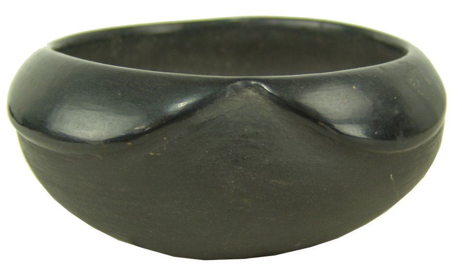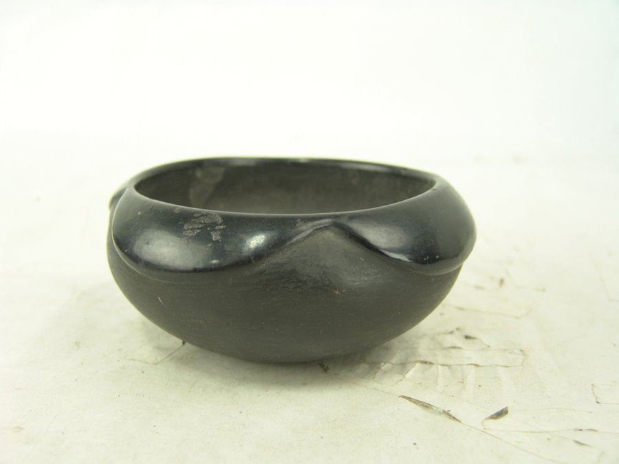 Small black ware bowl with raise scalloped rim. Good condition, unsigned.,,2-1/2" x 5"