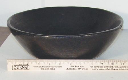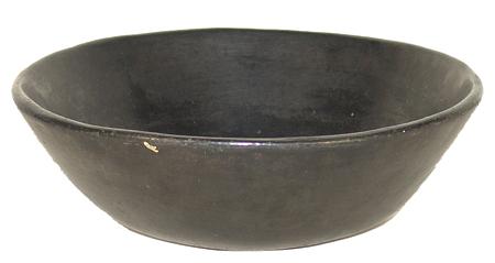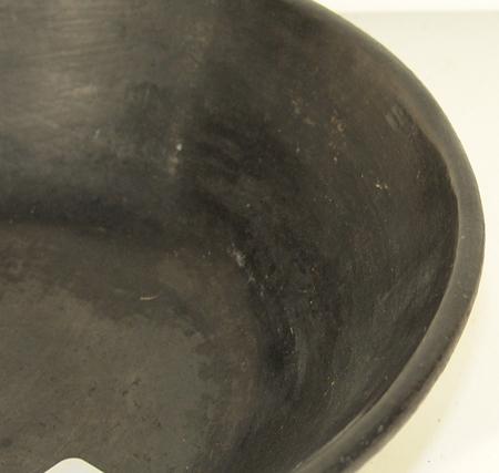 Large blackware pottery bowl with flared sides. Condition: very good, used. 4" x 12"