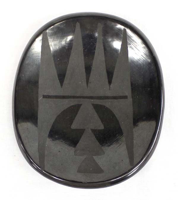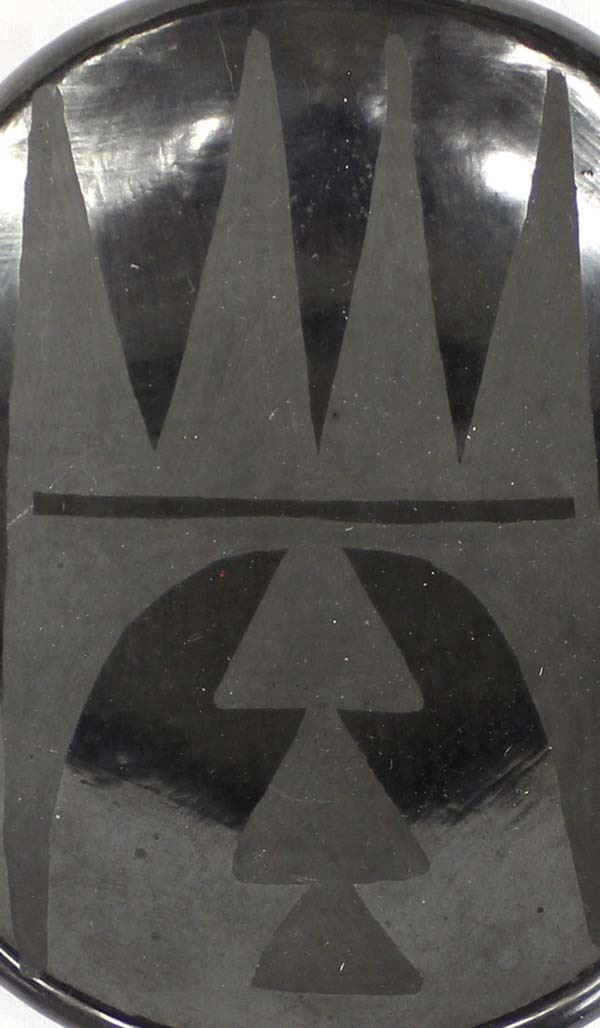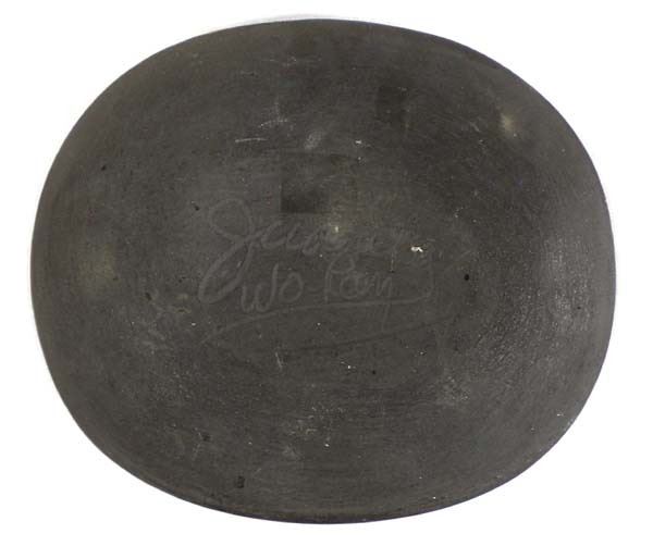 Native American San Ildefonso Matte on Black Pottery Shallow Bowl by Juanita Po Peen Gonzalez (1900 - 1988), measures 4'' x 5'' and is signed on the bottom, highly burnished, FYI: ''Juanita Gonzales was originally from Taos Pueblo. She married Louis ''Wo-Peen'' Gonzales (1907-1990) his Tewa name, ''Wo-Peen'' means Medicine Mountain. Juanita learned to make pottery from her sister-in-law, Rose Gonzales (1909-1989).''