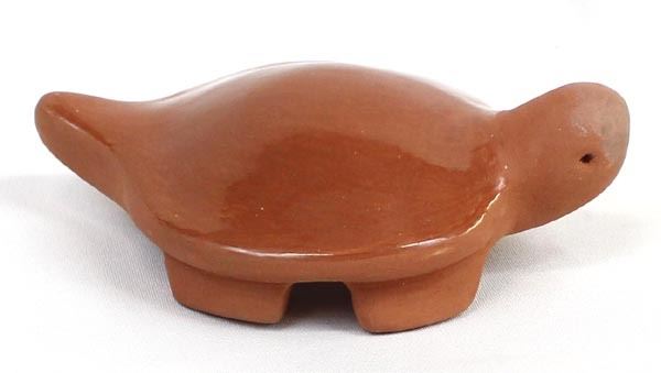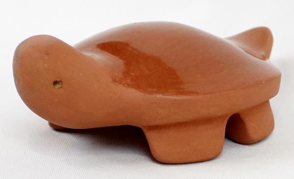 San Ildefonso Pottery Turtle -- Belle , features highly burnished shell, terra cotta in color and measures 2.25''H x 6''L x 4.5''W, San Ildefonso Pueblo is home to some of the greatest Native American potters. San Ildefonso Pueblo is located approximately 25 miles northwest of Santa Fe, New Mexico.