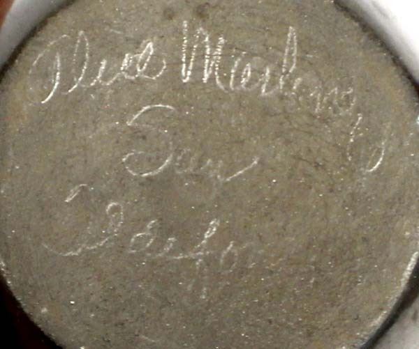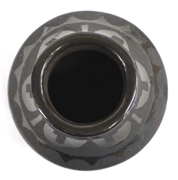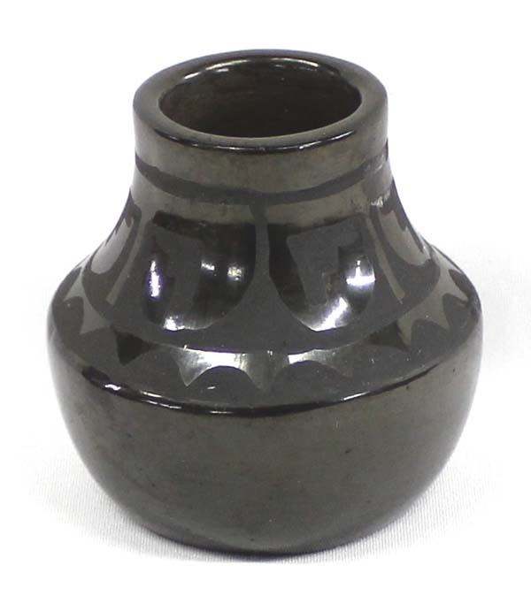 Native American San Ildefonso Pottery Vase by Alice Martinez, measures 3.5'' x 4'' and is signed on the bottom, matte on black designs, highly burnished, nice thick walled piece, FYI: ''Alice has been making pottery for more than fifty years. Over the years, Alice has perfected the Tunyo polychrome matte on polished black style pottery that the Martinez family from San Ildefonso had become famous for back in the early 1900's. Alice's father, Richard Martinez was the adopted son of the famous Maria Martinez.''