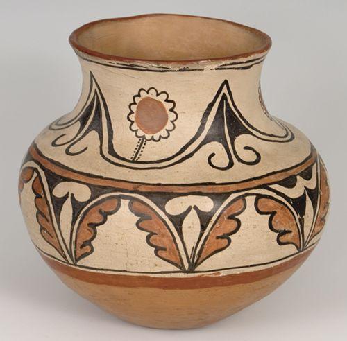 San Ildefonso Pottery Vase. 9 ½” x 10". Banded, stone polished, red rim top. c. 1900-1910. Fine condition. (est $6,000-7,000)