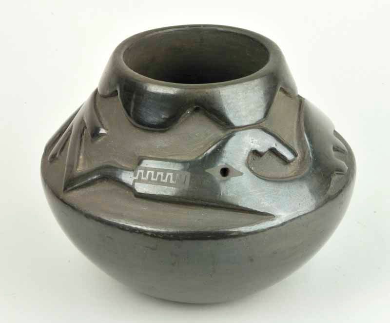 San Ildefonso, Incised Blackware Avanyu Pot, signed Blue Corn