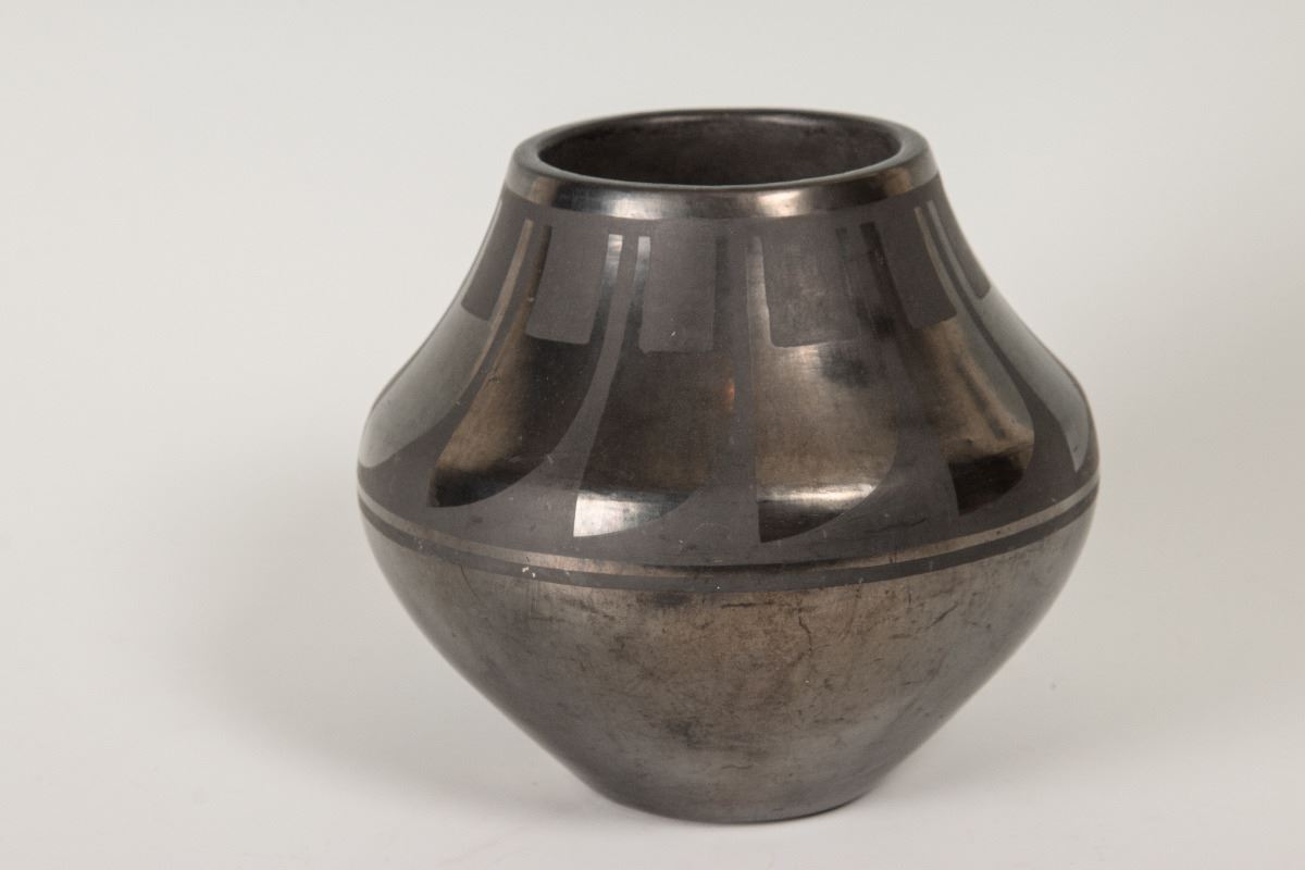 San Ildefonso Pueblo Pot by Tonita Roybal (1892-1945). 5” x 6 ½” blackware jar. Signed on bottom: Tonita.
