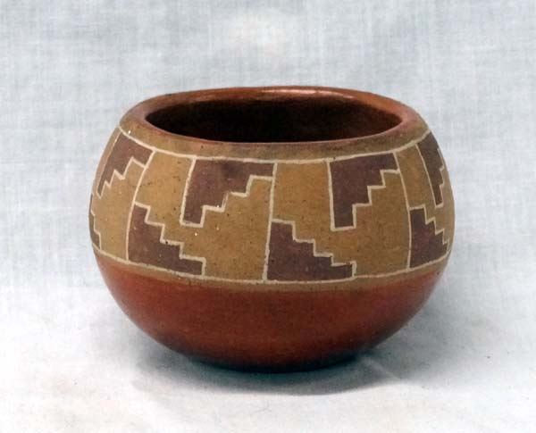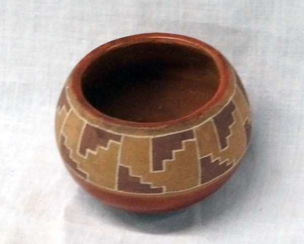 Native American San Juan Pueblo Polychrome Pottery Jar, measures 2'' x 3''
