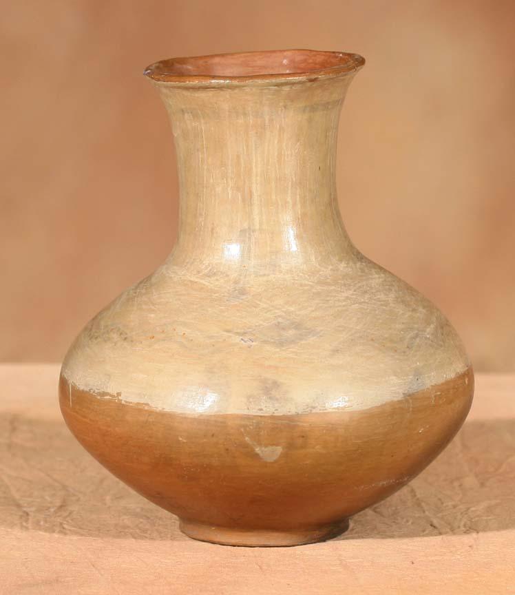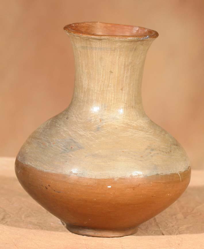 San Juan Vase. 8" x 6". White on red vase with footed base. Circa 1890-1900. (est $300-500). Provenance: Bethany College, Lindsborg, KS. . For condition reports please visit: www.auctioninsantafe.com/cr2011.pdf