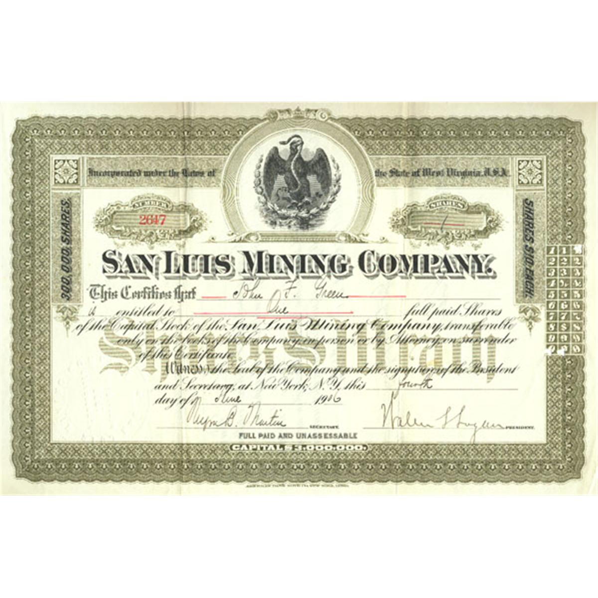 Stock certificates from the United States and other countries around the world. Items offered cover a wide variety of collecting topics including automotive, railroads, mining, autographed and much more.