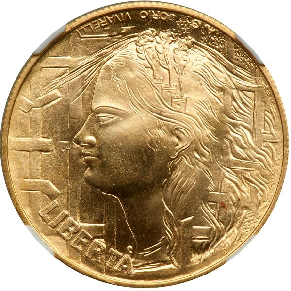San Marino. 10 Scudi, 1978. Fr-13; KM-88. Weight 0.8844 ounce. Smoking towers within circle. Reverse: Liberty head. NGC graded MS-64.