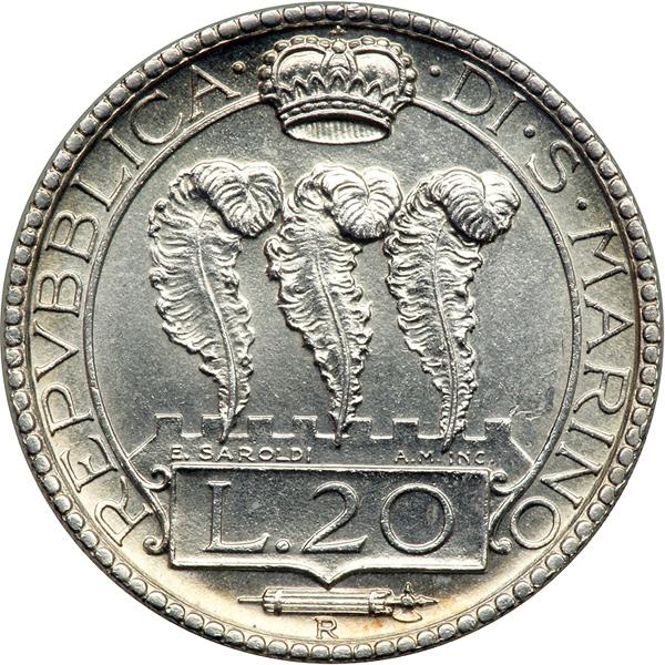 San Marino. 20 Lire, 1937-R