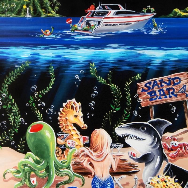 With unforgettable characters and undeniable charm, Michael Godard creates artworks that are sure to be the centerpiece of any room! "Sand Bar 1" is a limited edition hand-embellished giclee on stretched canvas, AP numbered and bears Godard's authorized signature! This piece comes gallery wrapped and ready to hang. Includes Certificate of Authenticity! Measures approx. 28" x 35" (image).
