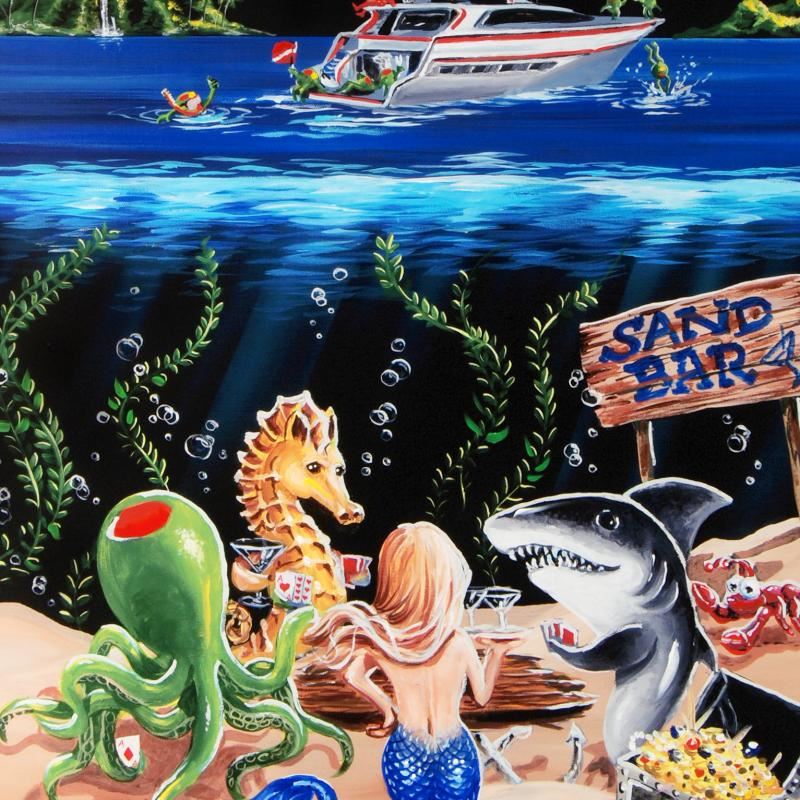 With unforgettable characters and undeniable charm, Michael Godard creates artworks that are sure to be the centerpiece of any room! "Sand Bar 1" is a limited edition giclee on stretched canvas, G numbered and bears Godard's authorized signature! This piece comes gallery wrapped and ready to hang. Includes Certificate of Authenticity! Measures approx. 17.5" x 22" (image).