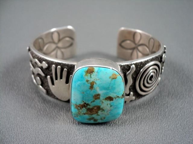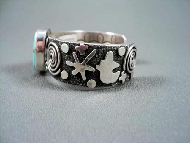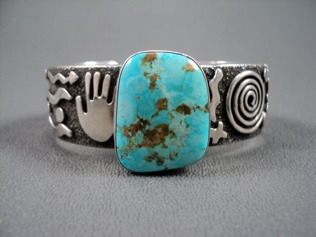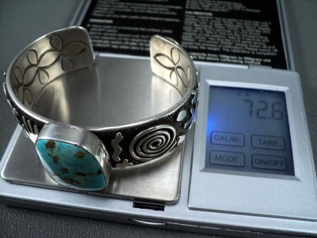 Sand Casting Sterling Silver Bracelet w/ Turquoise Weight: 72.6 Grams Retail: $ 795.00