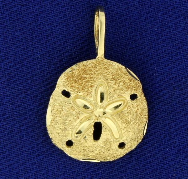 In 14k yellow gold. Just over 3/4 inch long with bale. 1/2 inch wide. 1.6g.
